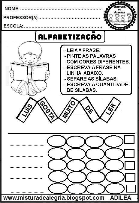 Atividades com frases para alfabetização para baixar