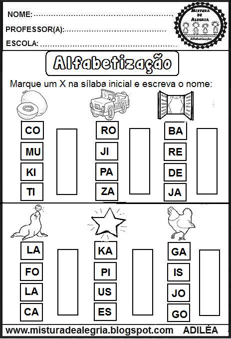Hoje o mistura de alegria traz para você, estas atividades para alfabetização - consciência fonológica, marcar as sílabas iniciais, para alunos das séries iniciais de alfabetização.